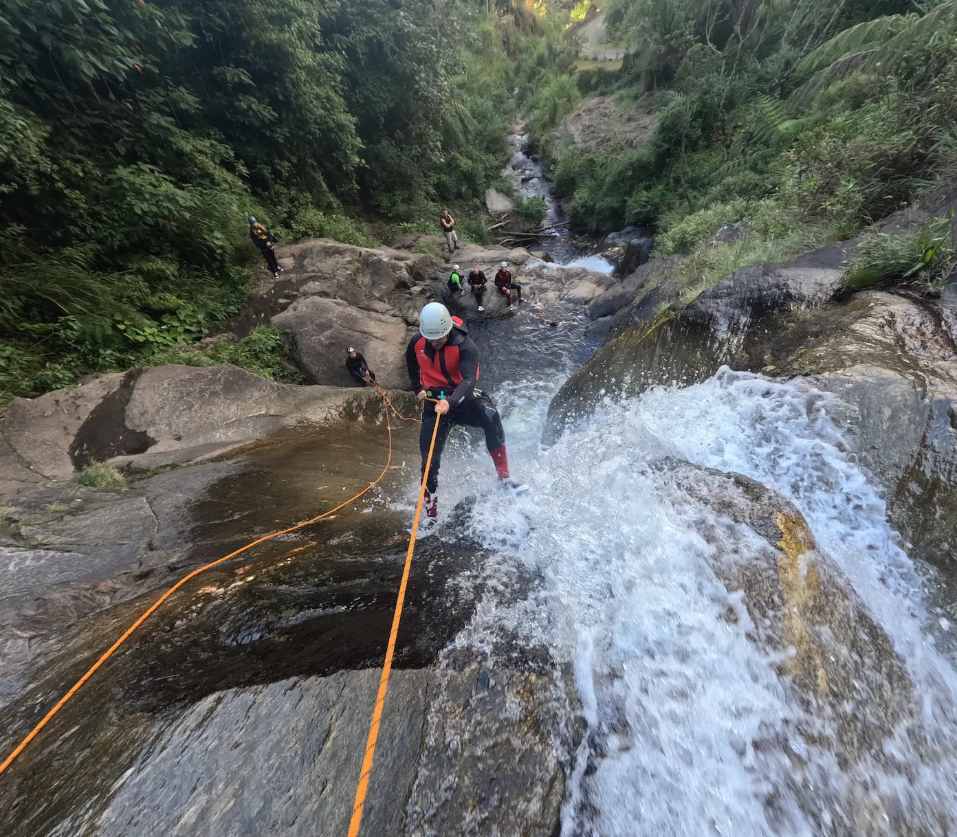 This is a vertical paradise. We will descend through a series of stunning waterfalls ranging from 8 meters up to 35 meters. You will learn and practice proper rappelling techniques while enjoying the refreshing water and views.