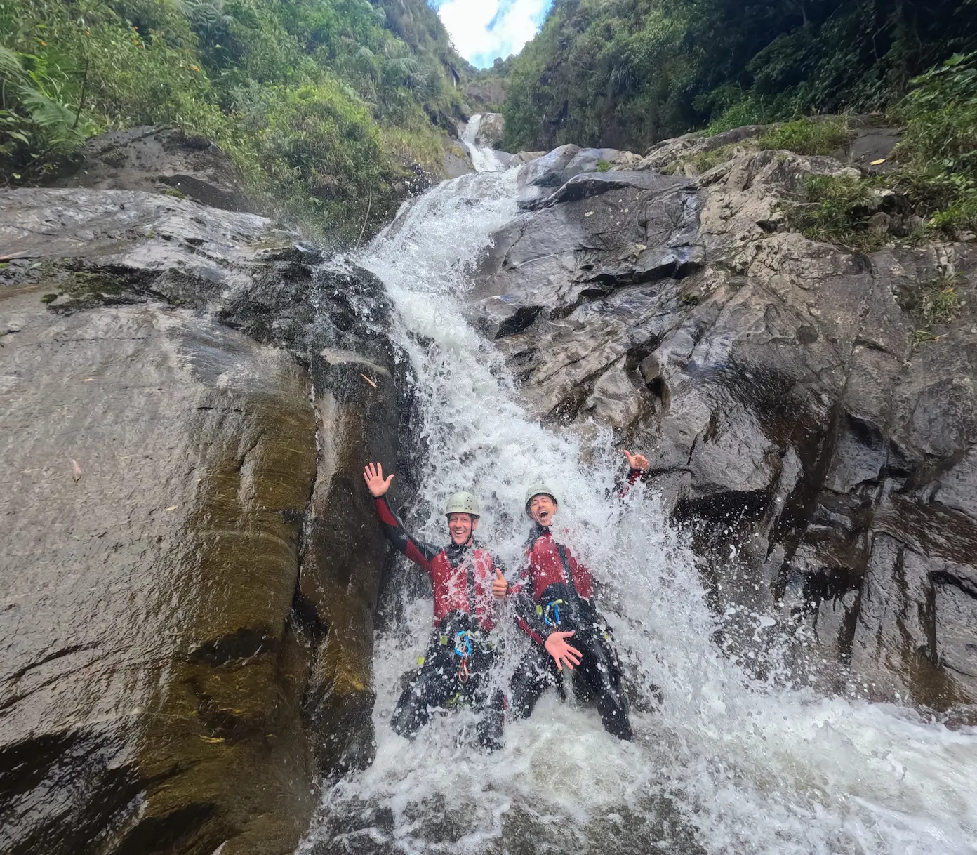 Canyoning in Banos Adrenaline cliff jumping in the Amazon gateway during Cashaurco canyoning.